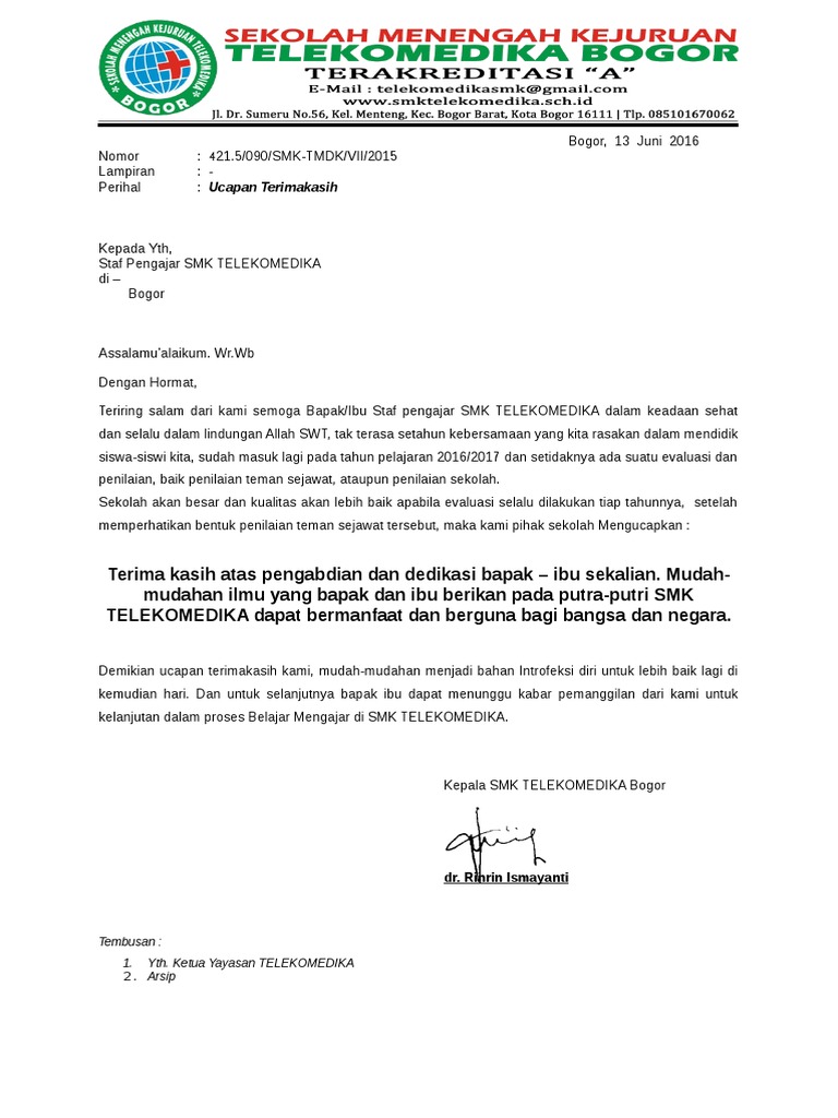 Surat Ucapan Terima Kasih Kepada Donatur With 585x1040 Resolution